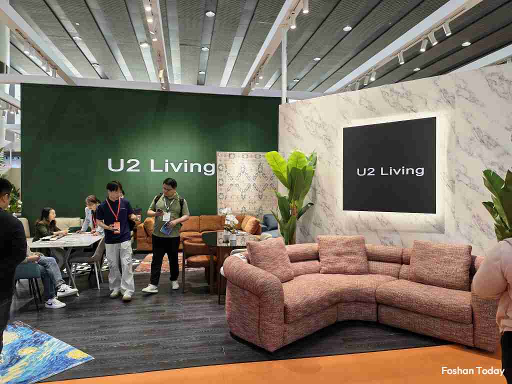 Alongside sofas, many booths also display lounge chairs, dining sets, coffee tables, and bedside cabinets as supporting products.