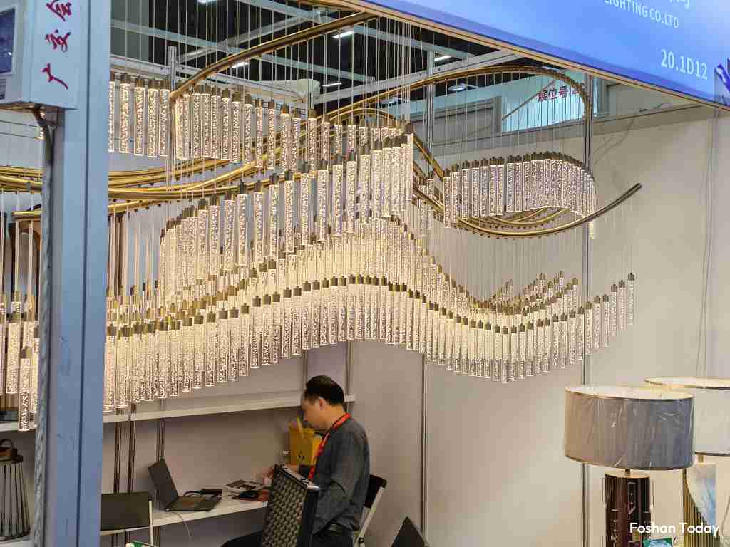 Many come from Zhongshan, with some from Zhejiang. The variety is extensive — from crystal chandeliers and pendant lights to floor lamps and decorative fixtures.